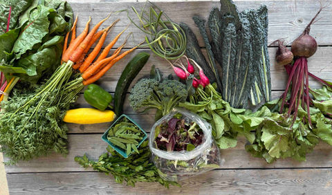 Best for families and those who like to prep meals ahead. This share gives you the widest variety of all our delicious vegetables, herbs, and fruit!